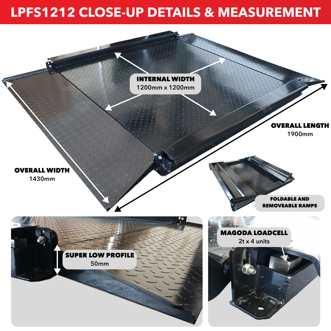 • Weighing pan size: 1.2m x 1.2m